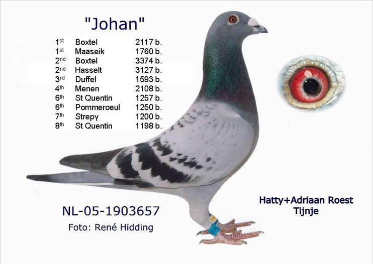 2011年我们买了一些100%赫尔曼鸽及赫尔曼原棚鸽。也许我是在炒作,但的确它们都是鸽中的佼佼者,已为众多的鸽舍带来巨大的成就。不只局限于短距离赛,还有600公里赛,它们都表现的相当出色。2010年春天,我们引进了一羽100%詹森血统雌鸽,是“灰冬日男孩”和“香提利”的孙女。秋天,我们还引进了一羽漂亮的深色雌鸽,鲁迪‧狄尔斯( Rudi Diels )的小好手( Goudhaantje )血统。之后我们我们引进两羽来自德国施罗德家族(Schroeder)的幼鸽。他们用我们的99-058的子代配对育鸽,建立了他们的鸽棚。从他的最好的儿子那里,我们得到两羽子代鸽。