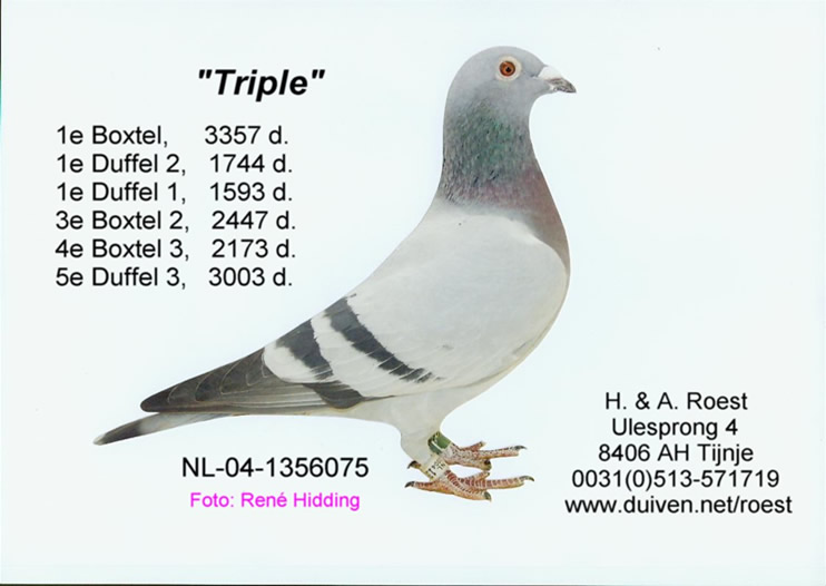 两羽出自沙利诺X范德温的最好种雌配对的幼鸽,我们大联赛(荷兰菲斯兰区)的总冠军。