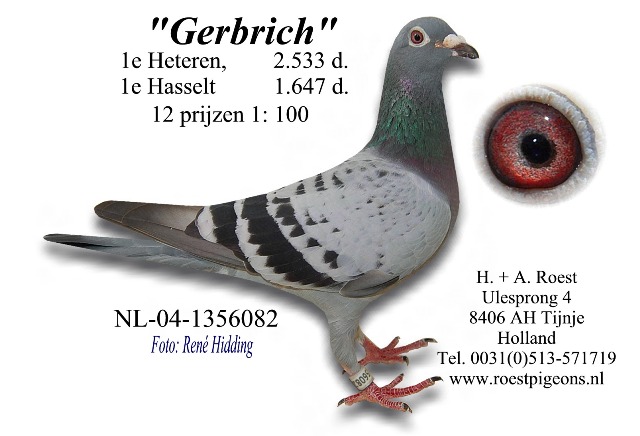詹森兄弟,克拉克,路易凡龙,沃克父子,雷内普特曼,彼得米卫,伯格曼兄弟及克劳斯.斯蒂尼克血统。克里斯·凡马森豪芬和来自我们的6羽奥林区克标准等级但有着极好的赛绩鸽,以及一些其他雄雌赛鸽血系。